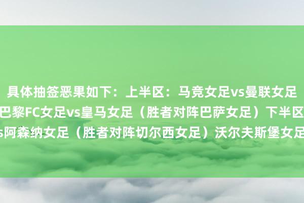 2024最新买球体育信息 12月18日讯 女足欧冠联赛阶段赛事战罢,淘汰赛抽签恶果出炉,其中联赛阶段名次最高的4支球队径直晋级8强,具体抽签恶果如下: 上半区: 马竞女足vs曼联女足(胜者对阵拜仁女足) 巴黎FC女足vs皇马女足(胜者对阵巴萨女足) 下半区: 奥哈瓦里女足vs阿森纳女足(胜者对阵切尔西女足) 沃尔夫斯堡女足vs尤文女足(胜者对阵里昂女足)2024最新买球体育信息