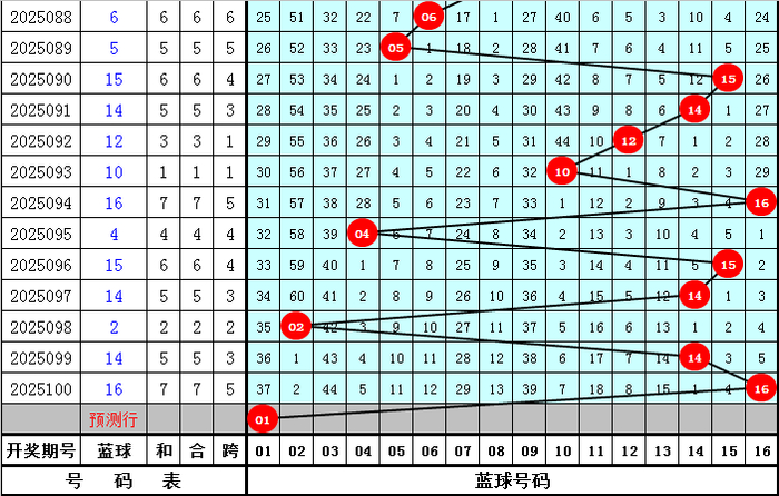 前9期开出7个蓝球号码,蓝球以冷码为主,热码蓝球开出相对较少,还莫得出现的蓝球为:01、03、05、06、07、08、09、11、13,共9个,本期防蓝球为冷码,遗漏值较大,参考蓝球号码01。