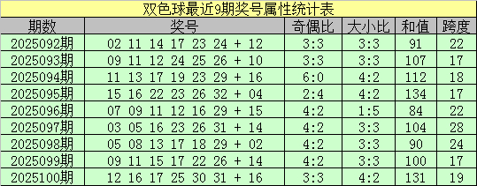 双色球上期第2025100期奖号为121617253031+162024最新买球体育信息,红球号码奇偶比为3:3,大小比为4:2,和值为131,跨度:19。 福彩双色球第2025101期马哥奖号分析: 最近9期红球前三位开出了14个红球,阐扬相对较冷,其中出现频次最多的红球,出现4次,前三位在01-16区段开出0-1次的红球有:01、02、03、04、06、07、08、10、14,共9个,本期扎眼该区段阐扬较冷的红球解冻2个,解除最近9期莫得出现的红球,参考红球号码09、13。 最近9期后三位