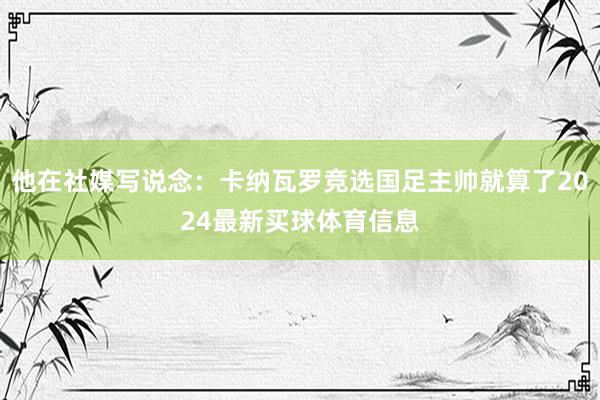 阐述注解袁甲在社媒谈到了卡纳瓦罗参与竞选国足主帅一事,他在社媒写说念:
