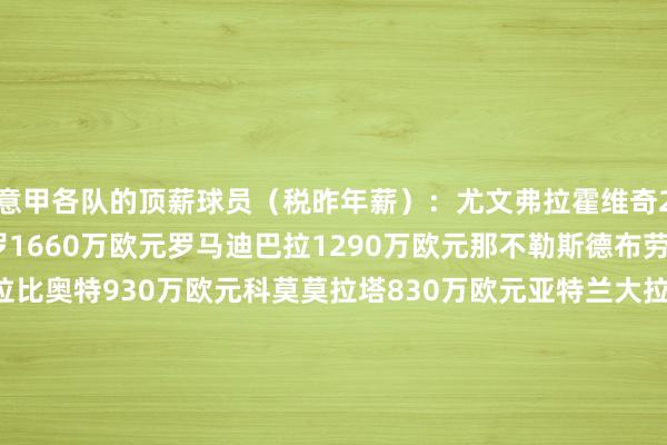 直播吧2月17日讯意大利太空体育列出了本赛季20支意甲球队各自的最高薪球员,其中尤文先锋弗拉霍维奇的税昨年薪高达2220万欧元。