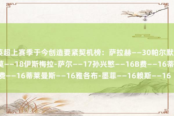 9月7日讯 WhoScored列出了英超上赛季于今创造要紧契机榜,萨拉赫30次居首,帕尔默、萨卡二三位。
